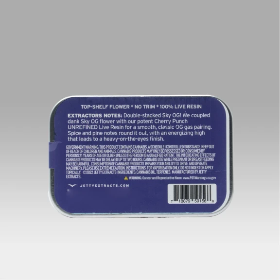 Imagine a blue sky, viewed from a beach in the tropics. White sands. Light breeze. No problems. That’s kind of the feeling we aimed for with this delectable blend. Sit back, relax, and enjoy. Infused with JETTY 100% Live Resin. Our premium fresh-frozen cannabis is cryoextracted, keeping it as close to the living plant […]