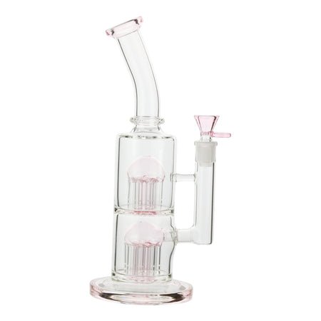 One percolator is great, but two is even better. This cute glass bong efficiently uses its interior space with dual tree percs that filter, aerate, and cool the water twice for extra comfortable tokes. The 12-inch water bong is made from clear heat-safe glass with transparent pink accents on the base, top of the percolators, neck, and mouthpiece. The water pipe’s curved neck not only adds visual appeal, it also makes it difficult for dirty bong water to reach your lips. For more pink smoking accessories, check out our Pop of Pink Collection for pipes, vapes, and bongs in everyone’s favorite hue.